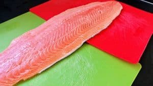 La scelta del salmone è fondamentale per l’ottima riuscita di questa preparazione, ovviamente la materia prima deve essere freschissima. L’ideale sarebbe un autentico salmone selvaggio pescato a canna magari ma oltre ad essere un salasso è quasi utopia reperirlo, quindi il nostro consiglio è quello di acquistare salmone Norvegese, Scozzese o Irlandese, dove i controlli e la cura negli allevamenti è garantita ed è meno intensiva. Scegli un salmone con buone infiltrazioni di grasso, e sì… come la marezzatura per le carni, il grasso infiltrato nel salmone è quello che farà la differenza a livello di gusto.