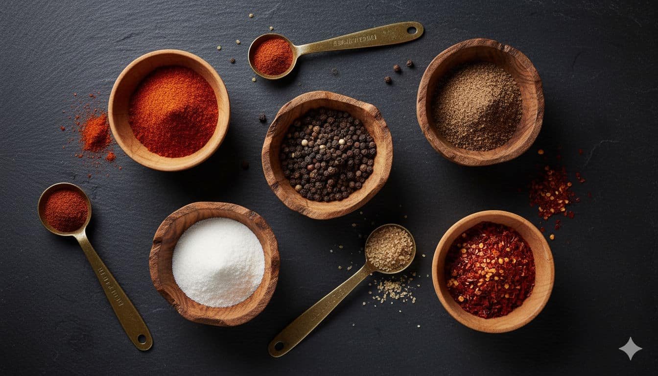 Questa è la parte creativa, il tocco personale che rende unico il tuo rub. Sono le spezie che aggiungono profondità, carattere e complessità. Qui le possibilità sono infinite, ma ci sono alcuni classici intramontabili del barbecue: