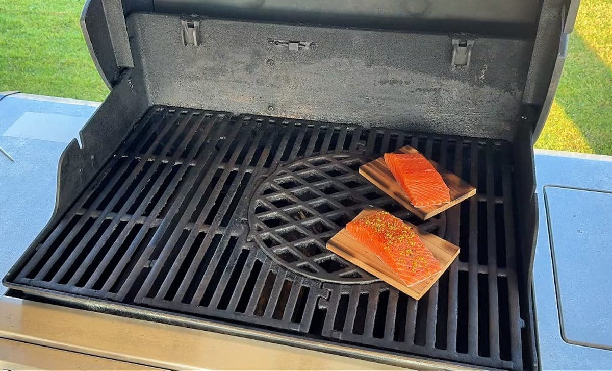 Nel frattempo, il calore scalda il legno che rilascia oli essenziali e vapore aromatico, infondendo nel pesce quel profumo inconfondibile di cedro e fumo leggero che non potresti ottenere in nessun altro modo.