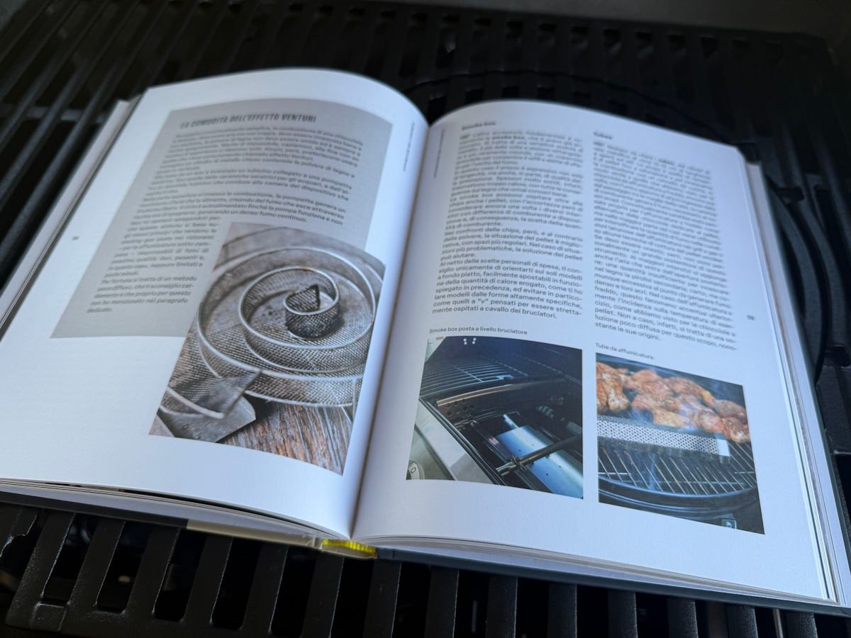 Libro Universo Affumicatura appoggiato sulle griglie del bbq